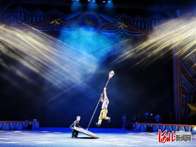 吴桥东方杂技城舞台中心,来自丹麦的Motus跳板组合带来了全新规划的“双跳板”扮演。该节目打破传统单跳板形式,将两块跳板创造性地进行组合,为高难度跳动与平衡动作供给了更多或许。