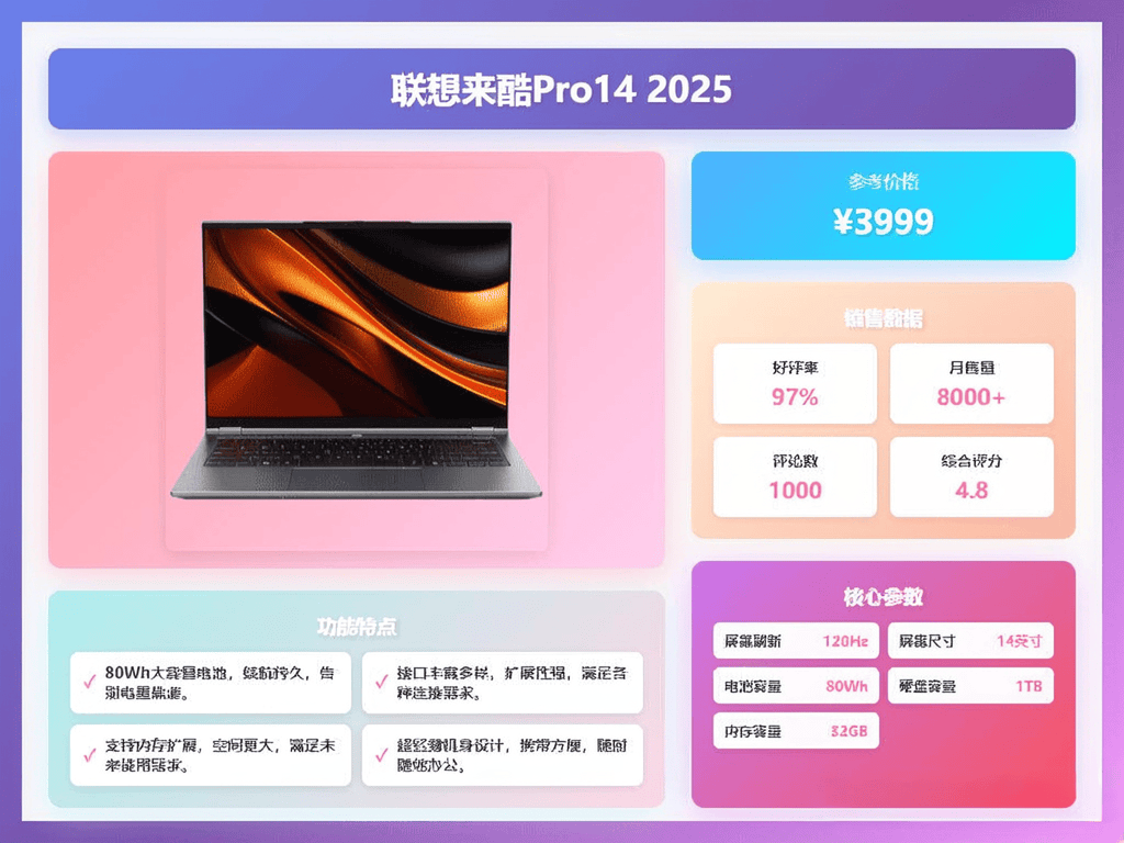 在3500元左右选购笔记本电脑时,配置方面一定要仔细查看。首先,处理器是关键,尽可能地选择酷睿i5或AMD锐龙5以上的,这样才可以保证日常使用不卡顿。内存至少要16GB起步,现在的软件都比较吃内存,8GB可能会显得捉襟见肘。固态硬盘也必须安排上,512GB打底,否则开机和读取速度会慢到让人崩溃。屏幕方面,IPS屏是首选,色彩好、可视角度大,1080P分辨率基本够用,当然,能上2K屏就更好了。续航方面也要关注,如果经常需要带着出门,电池容量越大越好。对了,接口也很重要,USB、HDMI等都要有,方便连接各种外设。